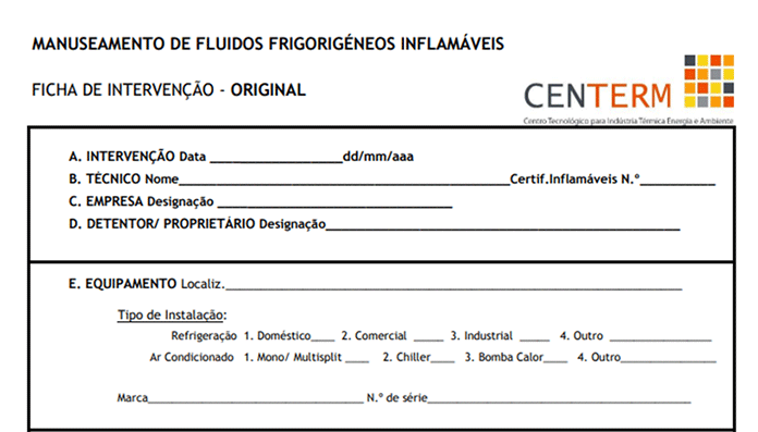 Nota - Quando o técnico faz um “Retrofit” de um fluido ODS para um fluído fluorado, deve sempre preencher duas fichas, a da APA (Decreto-Lei n.º 152/2005) e a do Centerm (Decreto-Lei n.º 145/2017).