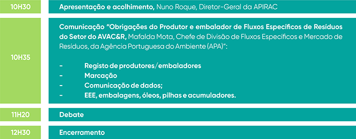 Este webinar integra o plano de ações da APIRAC para 2025 de sessões esclarecimentos aos Associados, numa parceria com a APA sobre Registo de Produtores/Embaladores e as suas interações no SILiAmb, para ampliar a clarificação de diversos aspetos muito importantes relacionados com a atividade das empresas do Setor do AVAC&R.
