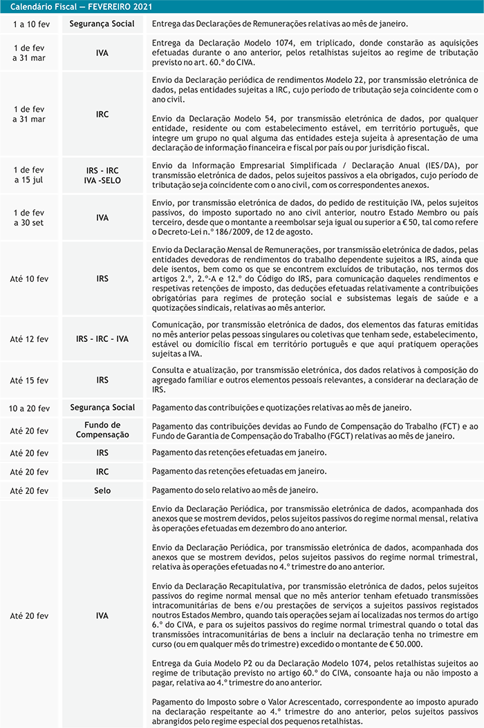 Declaração de Retificação n.º 2/2021 - Diário da República n.º 11/2021, Série I de 2021-01-18 - Retifica a Portaria n.º 8/2021, de 7 de janeiro, que aprova os modelos de impressos destinados ao cumprimento da obrigação declarativa prevista no n.º 1 do artigo 57.º do Código do IRS e respetivas instruções de preenchimento, publicada no Diário da República, 1.ª série, n.º 4, de 7 de janeiro de 2021. |