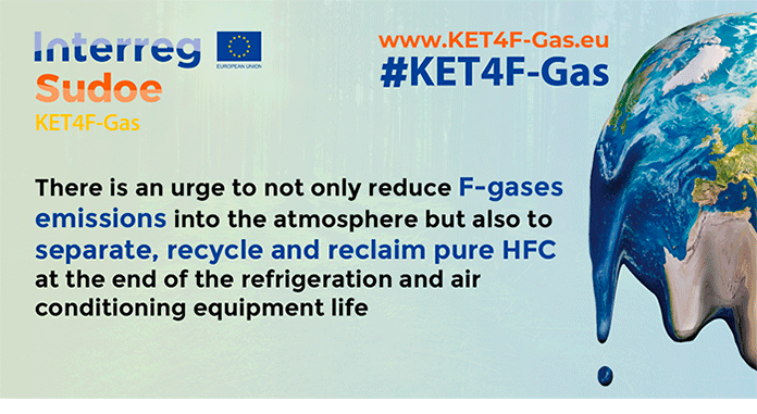 O projeto KET4F-Gas é um projeto europeu, co-financiado pelo programa Interreg Sudoe, que tem como principal objetivo reduzir o impacte ambiental dos gases fluorados, que têm elevado potencial de aquecimento global. Estes gases são usados como refrigerantes em sistemas de frio e ar condicionado, entre outras aplicações.