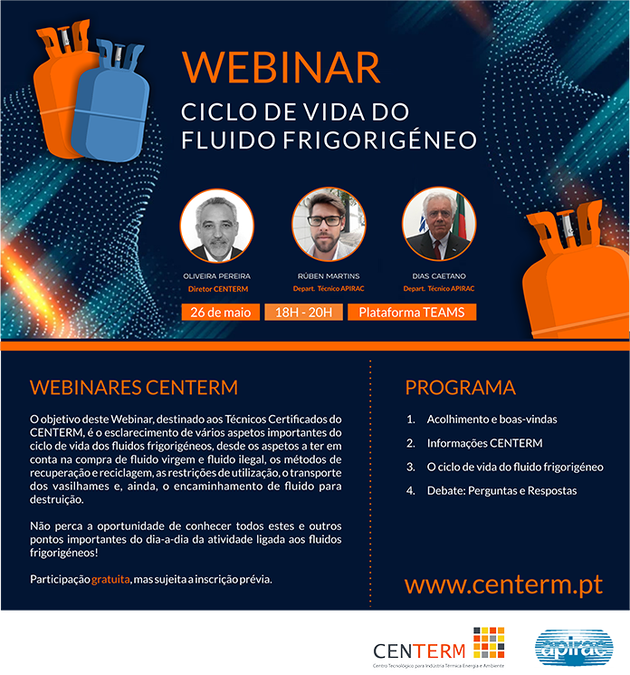 O CENTERM - Centro Tecnológico para a Indústria Térmica, Energia e Ambiente, iniciou um ciclo de webinares gratuitos em 2021. A iniciativa tem como objetivo dar formação, consciencializar e partilhar conhecimentos essenciais sobre a utilidade e importância do AVAC&R em plena pandemia COVID-19 e outros surtos bacterianos ou virais que poderão ser muitíssimo prejudiciais à saúde de todos.