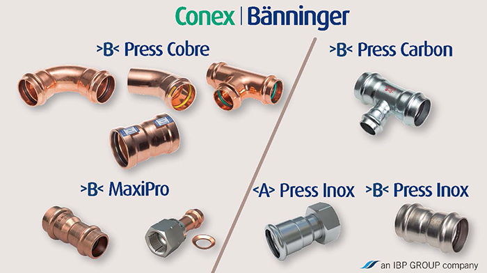 A Conex Bänninger marcou o seu lugar na história da tecnologia de prensar para sistemas de tubagem ao introduzir o precursor do atual >B< Press há mais de 30 anos. Desde essa data a família de produtos foi expandida, cobrindo múltiplas aplicações, com a mais recente adição de >B< MaxiPro o sistema revolucionário de acessórios de prensar para aplicações de ar condicionado e refrigeração.