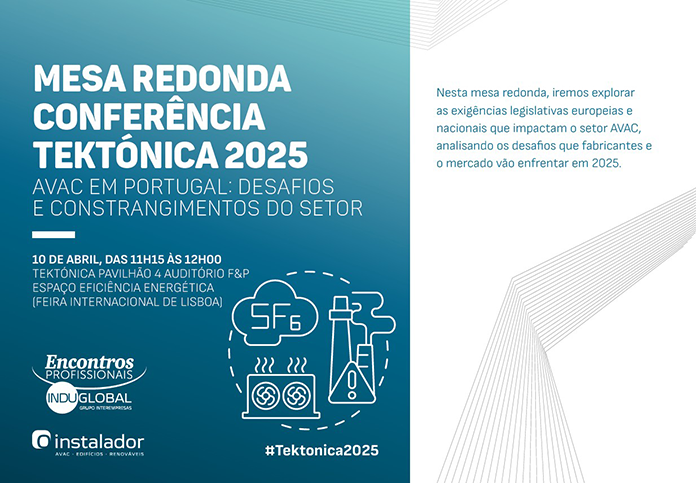 A Revista O Instalador vai organizar no dia 10 de abril, pelas 11H15, no Pavilhão 4 Auditório F&P Espaço Eficiência Energética, da Feira Tektónica, uma mesa redonda, subordinada ao tema 'Desafios e Constrangimentos do setor AVAC em Portugal'.